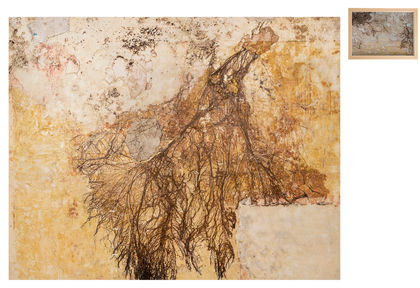 Esta serie de obras son producto de esta búsqueda. Se trata de pinturas de mediano y gran formato en las que se rescatan y restauran fragmentos del recubrimiento del muro de la casa, ceras resinas en las que se preservan elementos orgánicos y gráficas en takuhon.