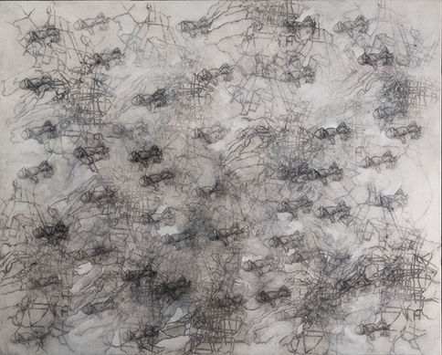 En la pintura de María Campiglia hay una noción de espera aletargada, hay acento en la oscuridad del trazo, y cuando éste se llena de amalgama, busca reparar la culpa del atrevimiento con plastas blancas que se vuelven sombras y silencios frágiles que permiten al color negro, sentirse luz.